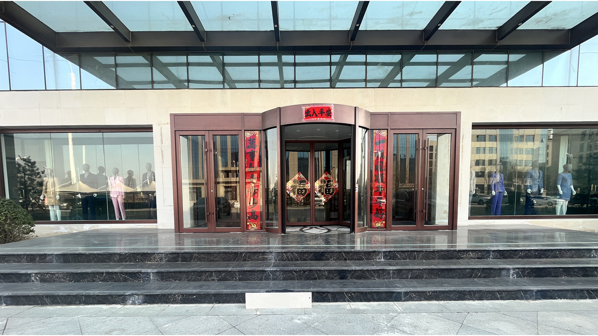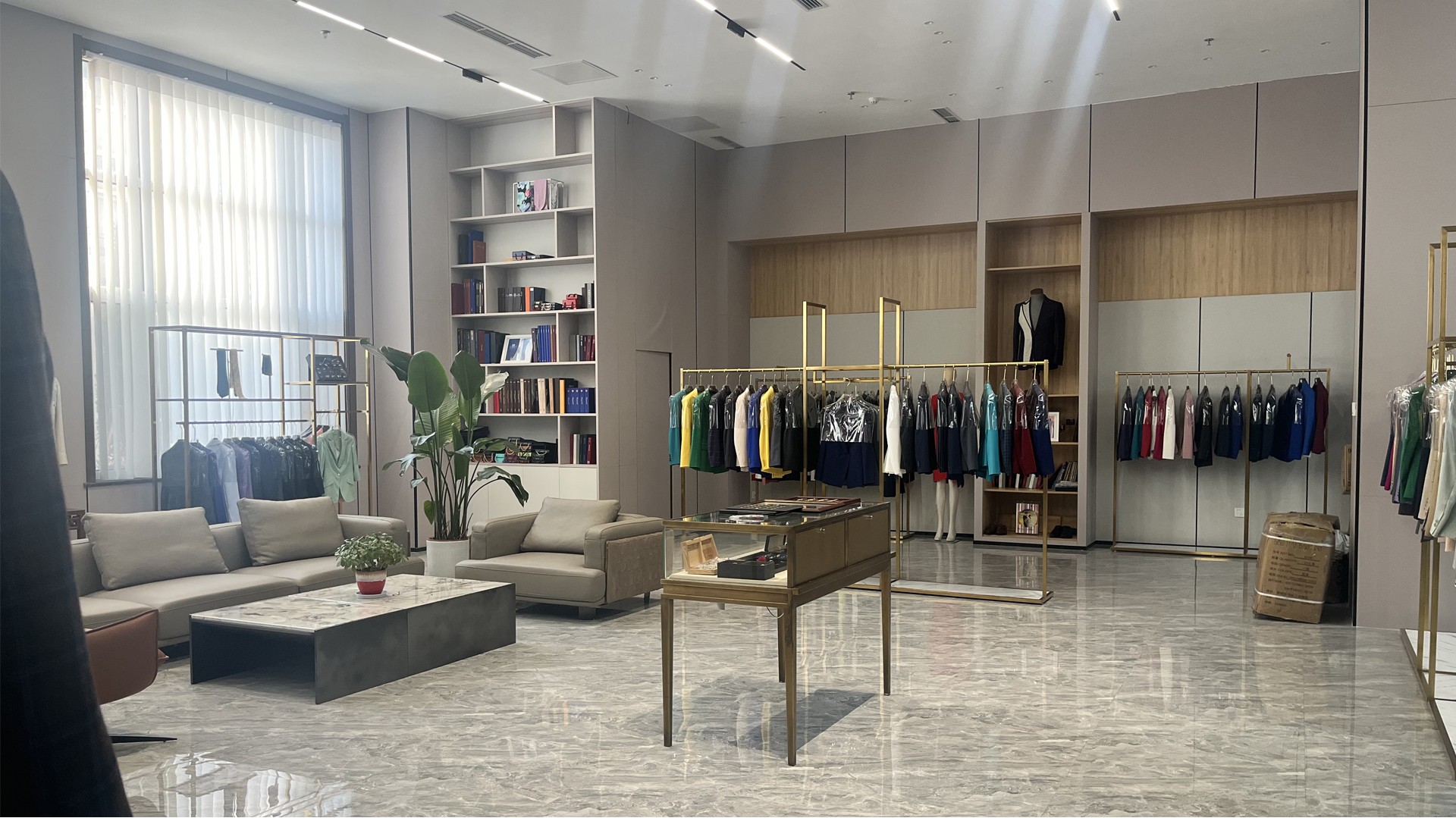 開放式工廠 行政辦公樓 形象展示店 展廳一角 樣衣展示 自動化裁剪 車間精細生產 流水線成品庫